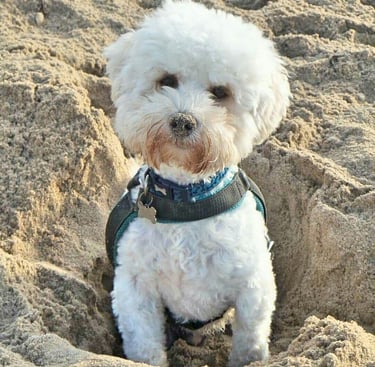 I’m Sharon, and this is Peanut, my playful Poochon pup. I also live with Tom, the cat, two new kittens, and also a friend’s dog, that I'm caring for during the day.
